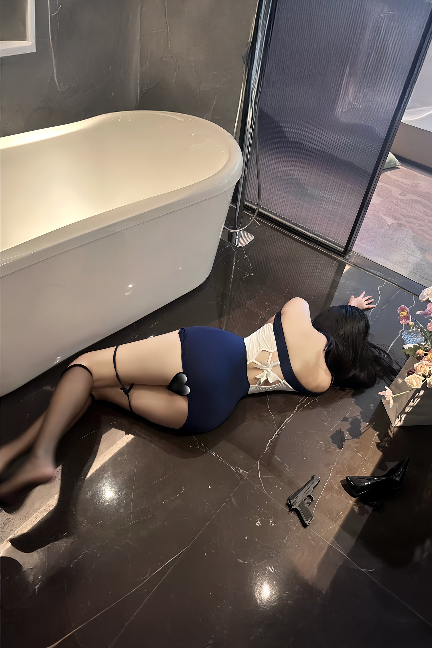 Navy Sailor-Inspired Bodysuit Costume Set – Cutout Design with Pleated Mini Skirt and Neck Tie, One Size, L2685